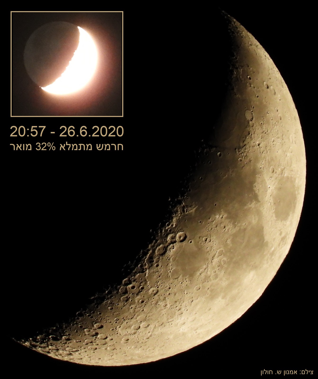חרמש נחסר 81% מואר - מרחק של כ-362 אלף ק"מ מכדור הארץ